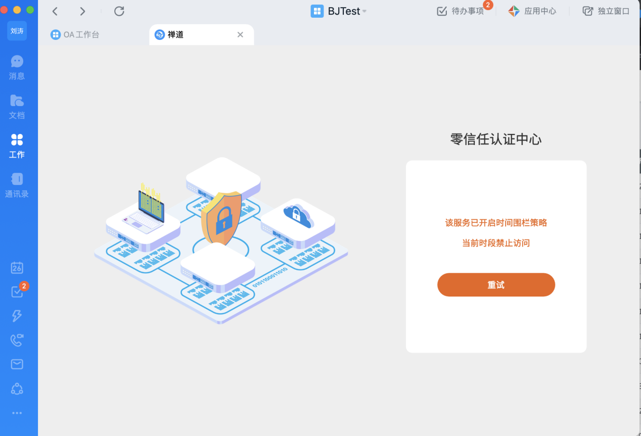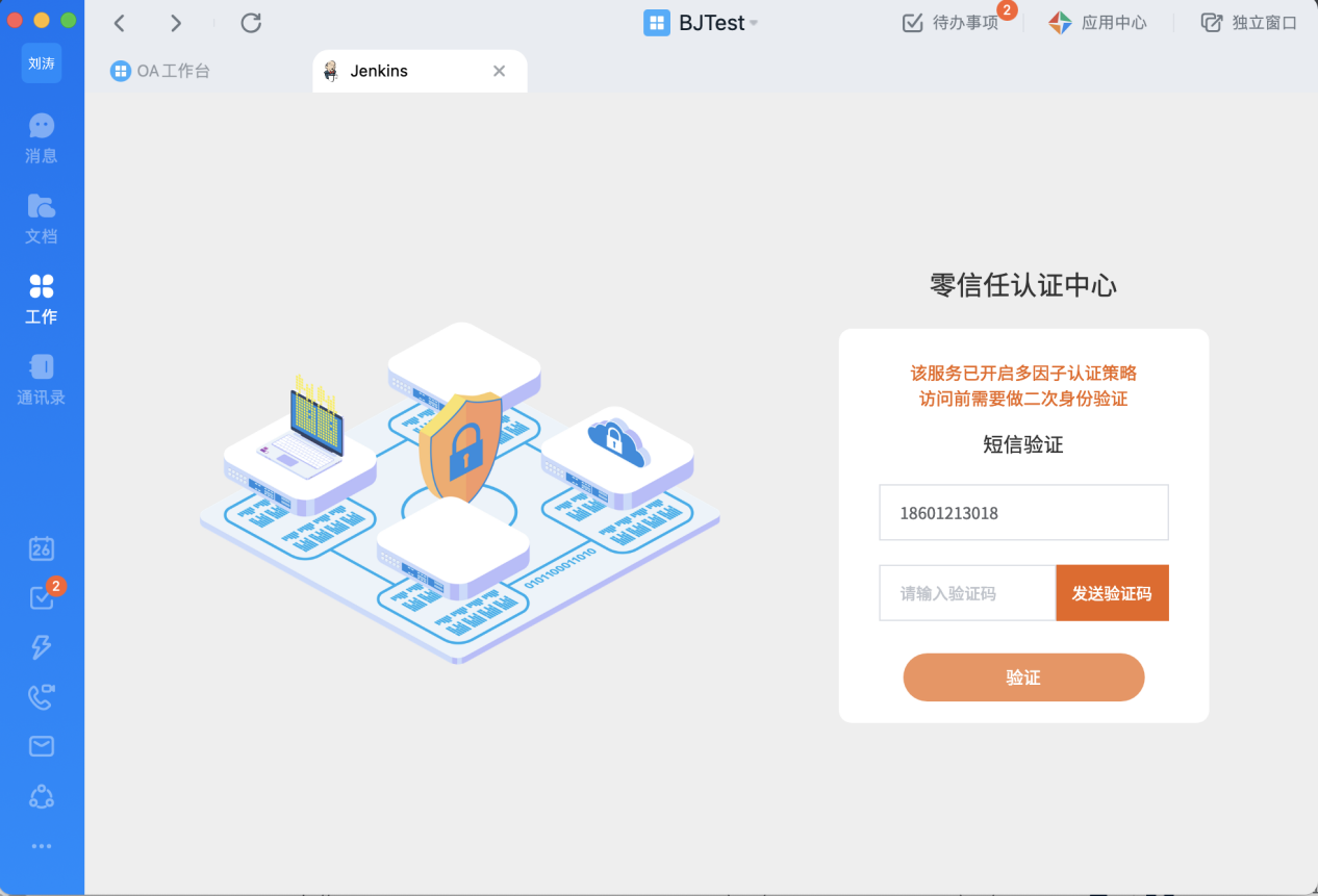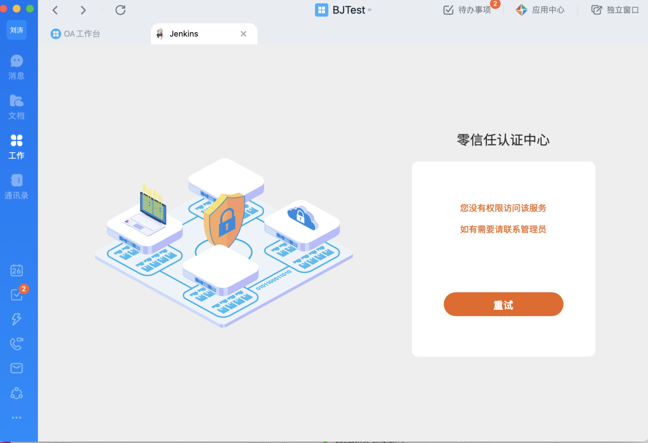 用戶登錄釘釘工作臺,看到的下面兩個應用即為受零信任保護的私有部署Web應用: