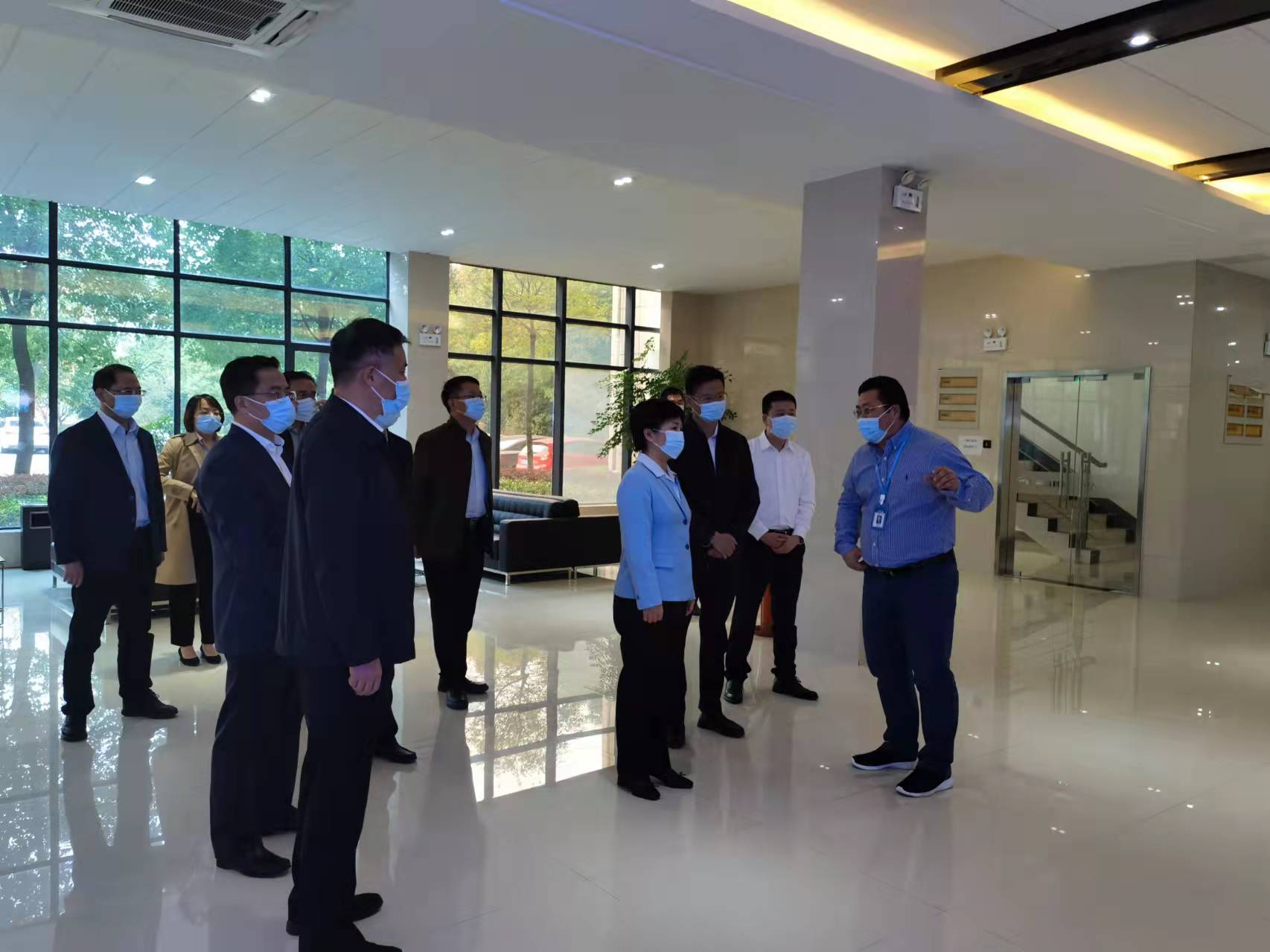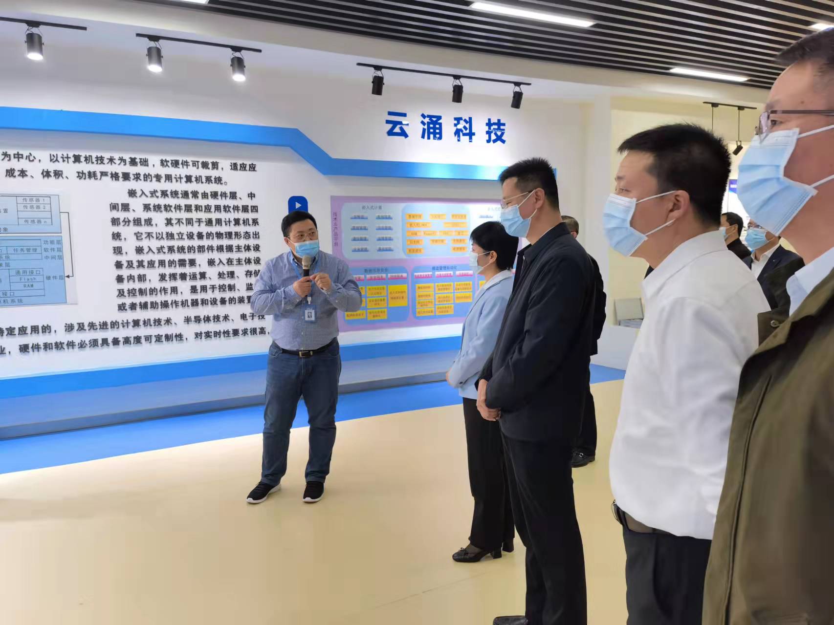 ? 為深入貫徹落實習近平總書記關于科技創新的重要論述,按照省市委的決策部署,堅持把創新作為第一動力,堅定不移實施創新驅動的發展戰略,加快構建科技創新生態體系,引領全市經濟更高質量的發展,?10月26日,泰州市市長萬聞華、海陵區區長劉劍波以及市區級、園區等相關領導蒞臨江蘇云涌電子科技股份有限公司,考察調研科技孵化和企業創新工作,云涌科技副總裁、董事會秘書姜金良陪同參觀,并進行了講解。