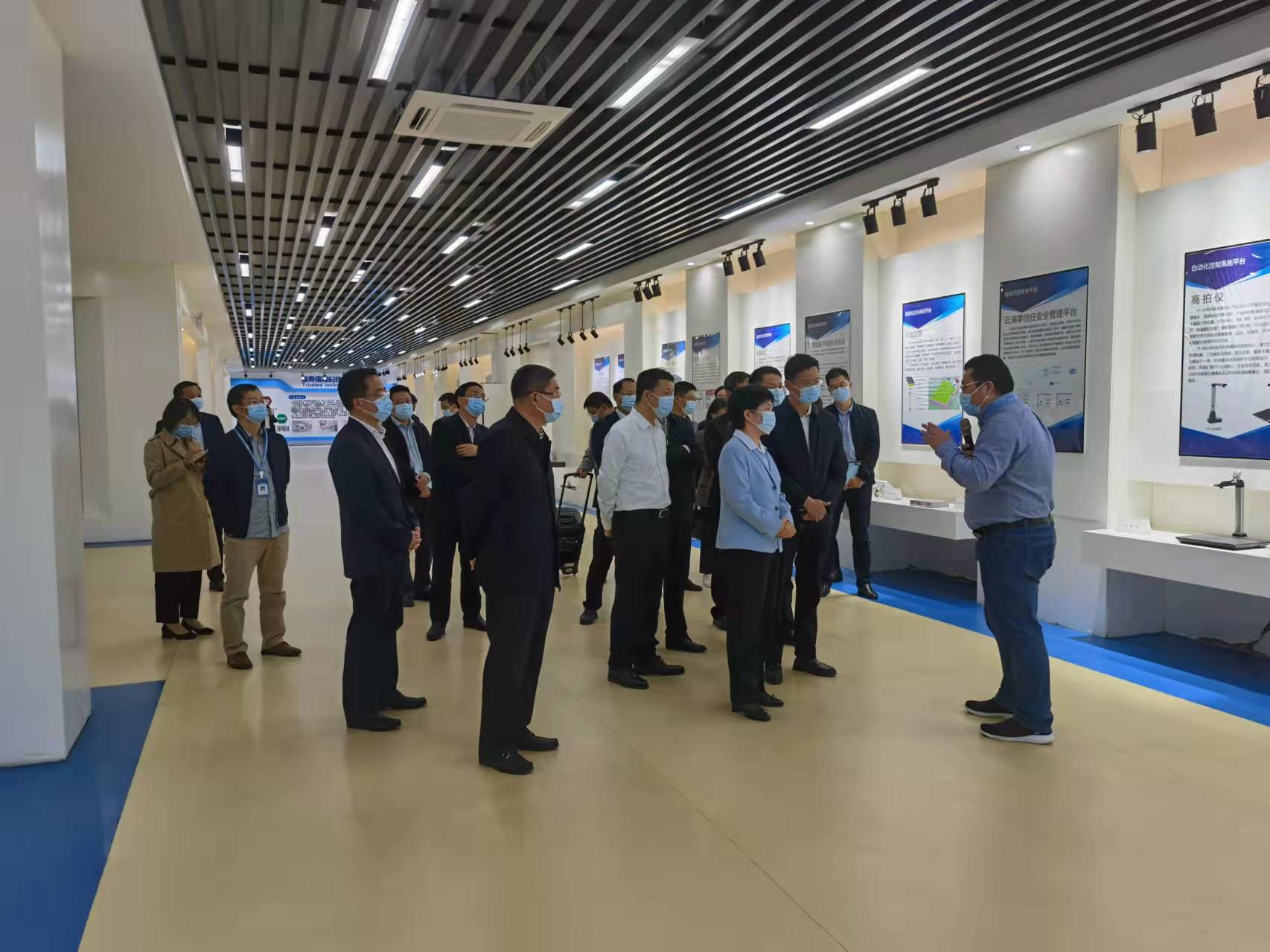 ? 隨后,萬市長等一行領導走進我司智能制造車間進行考察,姜總重點介紹了公司信息安全業務和智能車間運行的情況。萬市長對公司的發展以及積極創新的精神給予了充分的肯定,并勉勵公司繼續推進科技創新,在行業細分領域進一步做精做特,借力資本市場,實現更大發展。