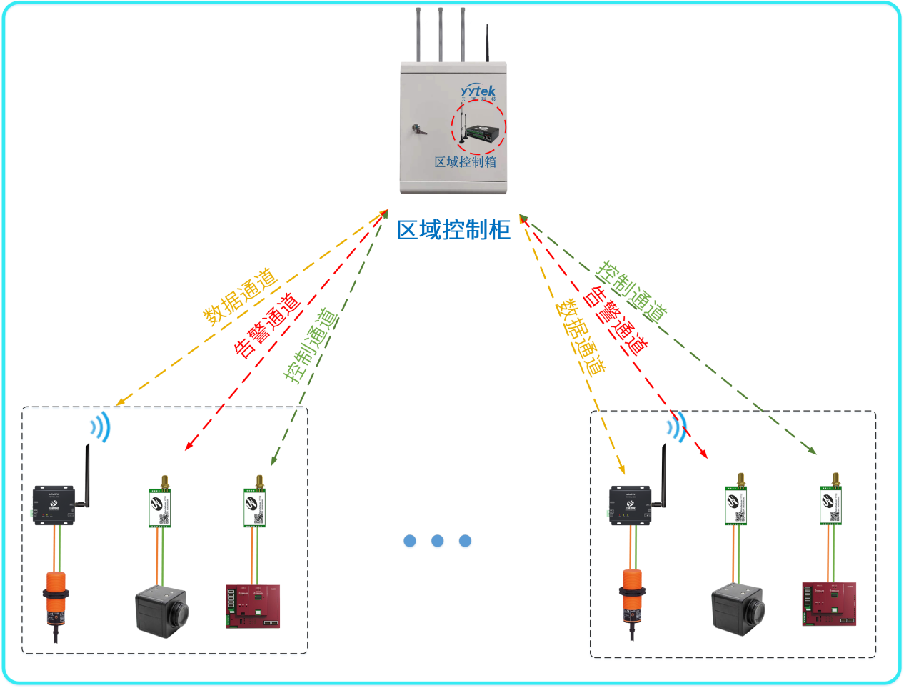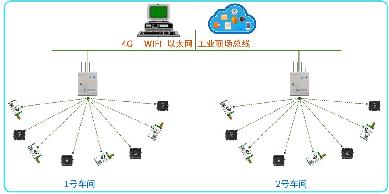 一個廠區(qū)可以配備多個區(qū)域控制箱,每個控制箱最多配備500-2000個設(shè)備節(jié)點,每個區(qū)域柜都能與工業(yè)系統(tǒng)進(jìn)行對接,也可相互通訊;