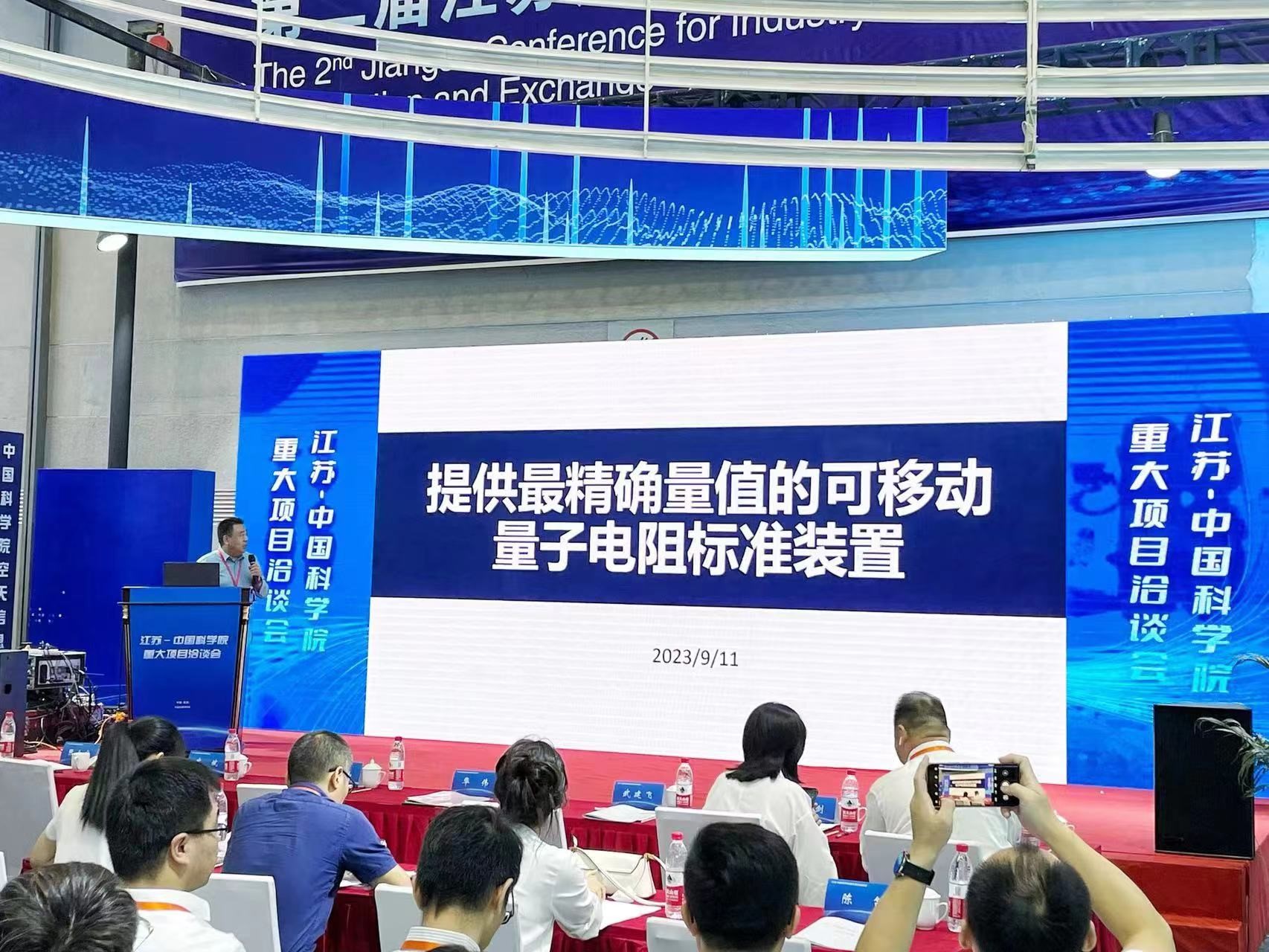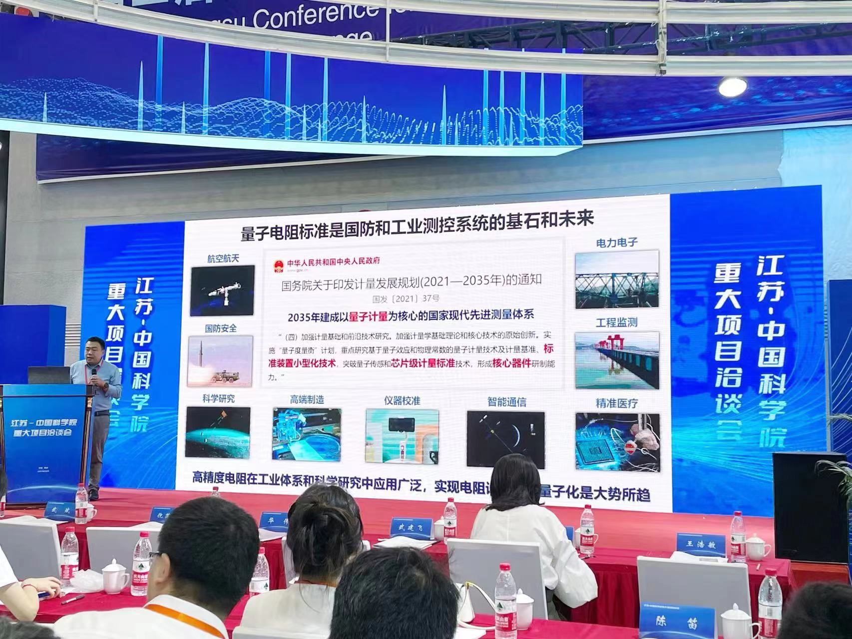 在江蘇——中國科學(xué)院重大項目洽談會的路演中,王浩敏研究員發(fā)表了題為《提供最精確量值的可移動量子電阻標(biāo)準(zhǔn)裝置》的演講,他表示量子電阻標(biāo)準(zhǔn)支撐了整個科學(xué)和工業(yè)測量參比體系,在電子信息、航空航天、醫(yī)療以及國防等領(lǐng)域有著廣泛的用途。量子電阻是可以直接測量且只與自然常數(shù)相關(guān)的宏觀電學(xué)物理量。目前,中、美、日等國家級計量實驗室均建成了量子霍爾電阻標(biāo)準(zhǔn)裝置(QHRS),并在進(jìn)行推廣,我國也正在開展針對用于新一代量子電阻的芯片技術(shù)研發(fā)。QHRS的研制將帶來電學(xué)測量原理、方法和儀器形態(tài)的全面創(chuàng)新,并形成獨特的材料與設(shè)備產(chǎn)業(yè),從而對信息產(chǎn)業(yè)結(jié)構(gòu)產(chǎn)生巨大影響。