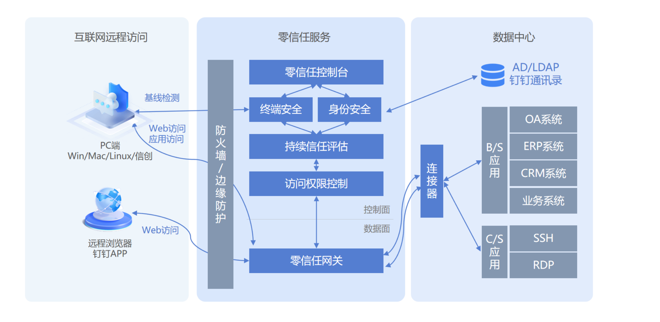 為了更好的進行安全防護。云涌零信任為企業客戶提供可落地的建設性解決方案,達到整改安全漏洞隱患,完善安全防護措施,優化安全策略,有效提升整體網絡安全防護水平的目的。將安全防護能力用到各業務場景,為企業的保駕護航。